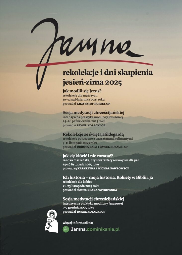 - Rekolekcje dla mężczyzn zatytułowane „Jak modlił się Jezus”, które w dniach 10–12 października 2025 roku poprowadzi o. Krzysztof Ruszel OP z Jamnej.