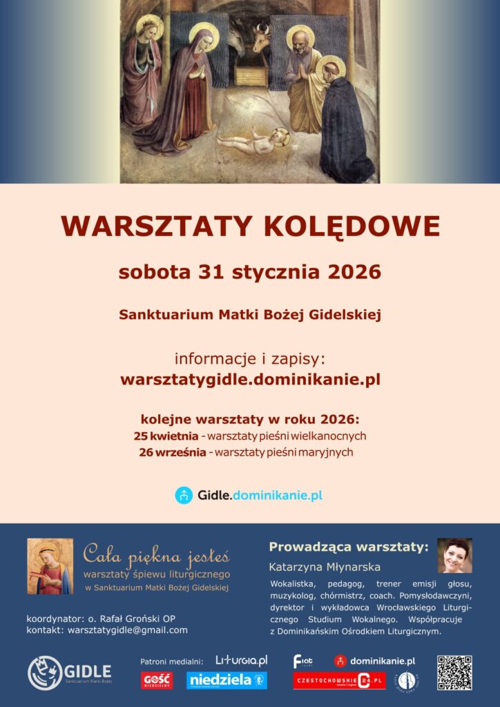 31 stycznia w Sanktuarium Matki Bożej Gidelskiej w Gidlach odbędą się jednodniowe warsztaty kolędowe z cyklu warsztatów śpiewu liturgicznego "Cała piękna jesteś"