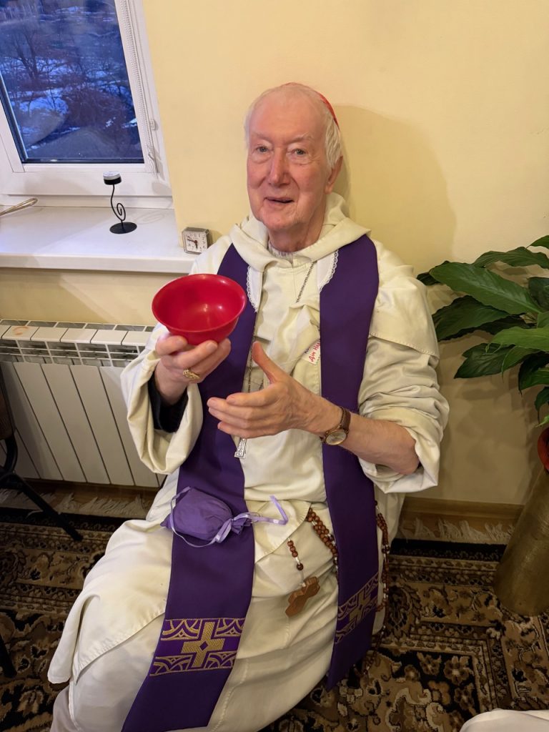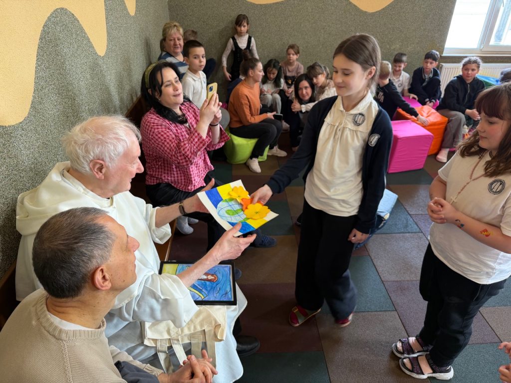 Siostry orionistki od wielu lat prowadzą w Korotyczu pod Charkowem dom dla samotnych matek, które znalazły się w trudnej sytuacji życiowej. To piękne świadectwo ewangelicznej miłości. Podczas wspólnej kolacji z udziałem braci Timothy’ego i Alaina mogliśmy usłyszeć wiele historii o tym, jak Bóg poprzez dobrych ludzi troszczy się o nas. Była także okazja, aby wrócić do jednej z medytacji wygłoszonej podczas Synodu Biskupów w Rzymie w 2023 roku. Kardynał Radcliffe opowiedział wtedy historię z pierwszych dni wojny: pewien ksiądz przyjechał odprawić Mszę świętą dla sióstr, które ewakuowały swój dom wraz z dziećmi i matkami. Wszystko było już spakowane — również naczynia liturgiczne. „Jedyne, co mogłyśmy zaoferować jako patenę, to czerwony plastikowy talerzyk dla dzieci” – opowiadała kiedyś siostra Renata. „Ale w ten sposób Bóg pokazał nam, że jest z nami. Siedzicie w piwnicy, w wilgoci i pleśni, ale Ja jestem z wami — na czerwonym dziecięcym talerzyku, a nie na złotej patenie”.